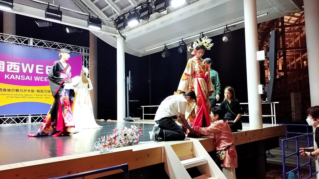 雨の中でも多くの方にご覧いただき、日本の伝統とモダンが融合した着物リメイクの魅力を、万博という最高の舞台から世界へ向けて発信できたことは、大きな喜びとなりました。