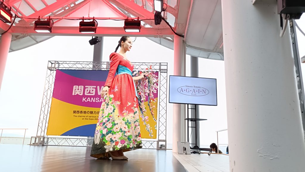 大阪万博で行われたKANSAIリメイクコレクションinアゲインの着物リメイクファッションショー